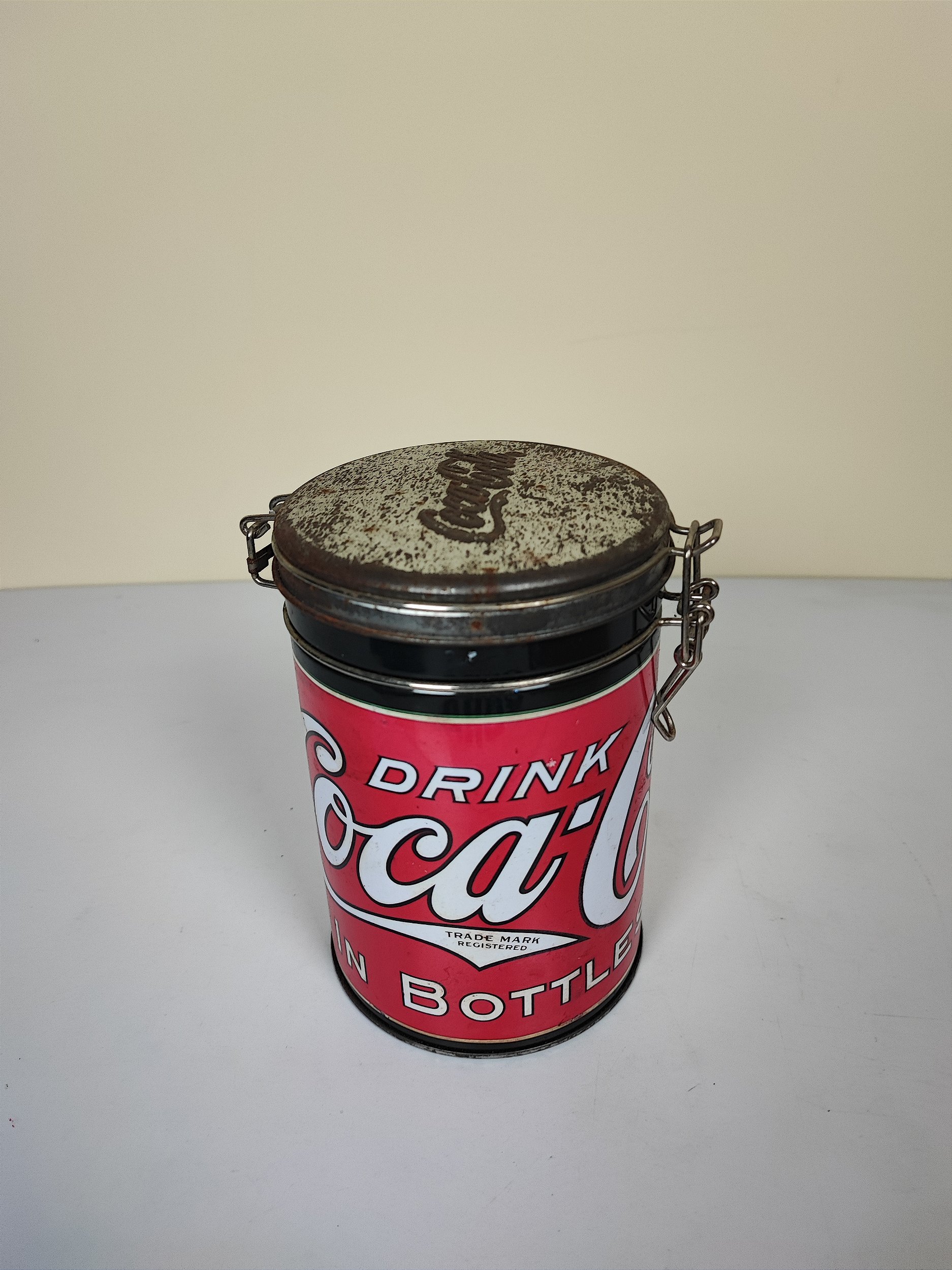 Linda lata, original de época e com trava, item decorativo de alta qualidade